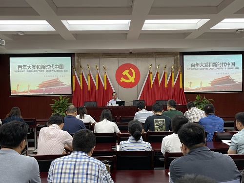 会上,李建柱教授以习近平总书记在庆祝中国共产党成立一百周年大会上的讲话内容为主线,以“百年大党和新时代中国”为题,围绕“中国共产党百年奋斗的光辉历程”、“中国共产党百年奋斗的基本经验”及“在新时代新征程上阔步前进”等三个方面从党的建设的历史开端、历史推进、历史经验等角度出发,多侧面、多维度地阐述了党从无到有,从小到大、从弱到强的历史过程。