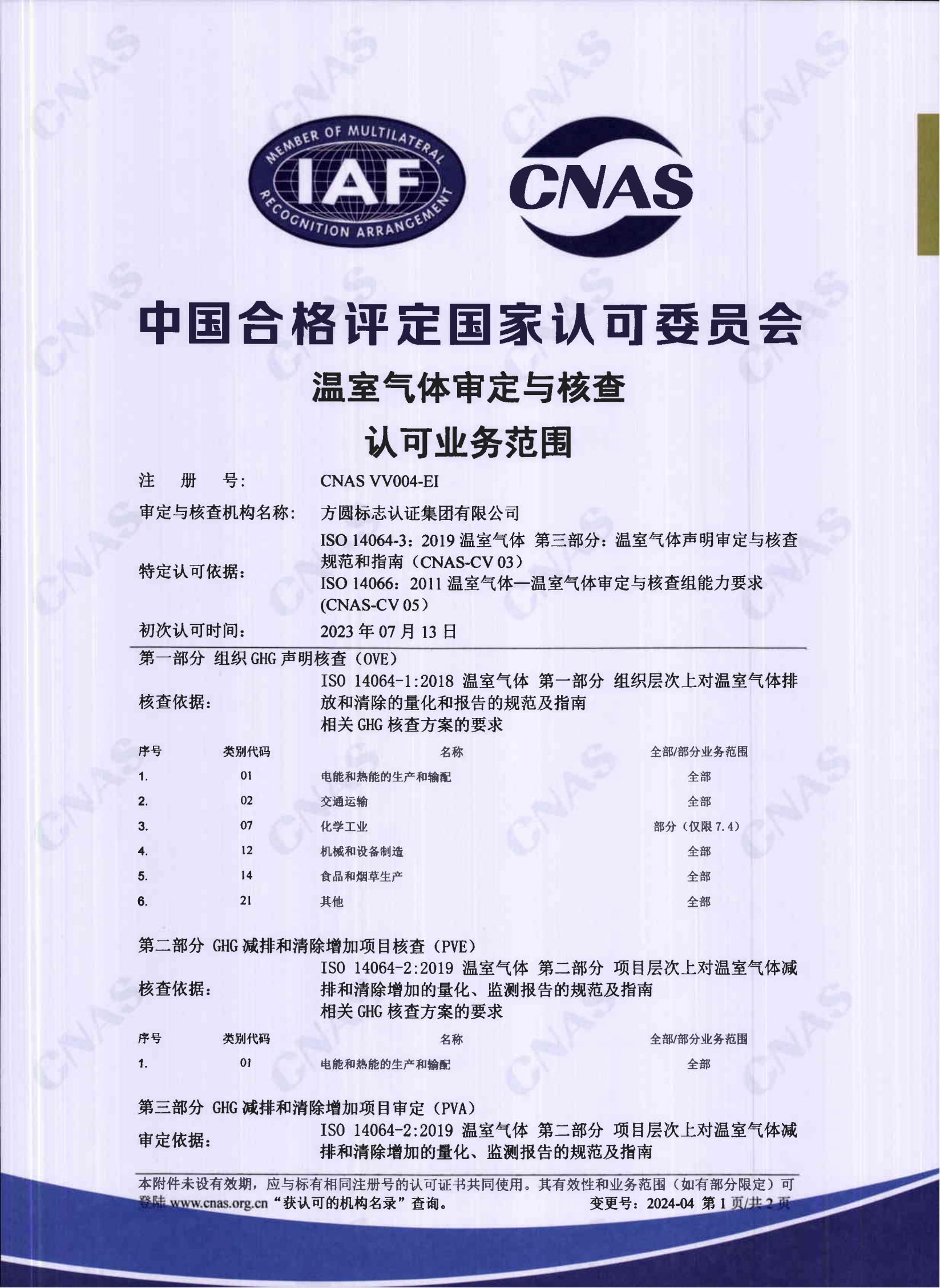 11 温室气体审定与核查认可证书_方圆标志认证集团 - 专业从事认证、认证培训、管理咨询、技术服务的企业集团