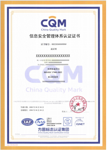 信息安全管理体系认证证书