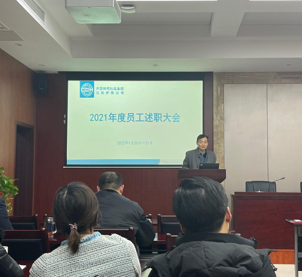 在21日的总结表彰大会上,施晓彦首先代表领导班子通报了方圆江苏公司2021年年度经营、质量目标完成情况,并从党建工作、财务精细化管理、认证业务市场开发和客户保持,认证过程管理,审核人员的培训、教育和培养,认证风险管控,配合集团工作,以及非认证业务和培训业务的拓展等方面进行全面总结,同时深入分析发展中存在的问题、痛点及改进措施,明确来年的工作目标和主要任务。