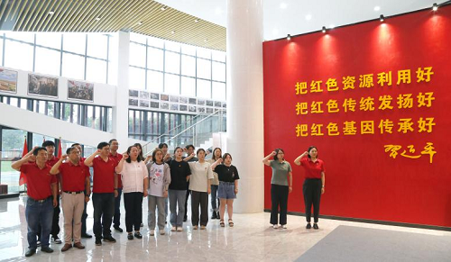 活动最后,大家一起参观了扬州党史文化公园初心馆,通过讲解员的讲解回顾了党的一大到二十大的百年奋斗光辉历程,深层次、多维度地学习了中国共产党党史,对党建文化既有了感官上的深刻认识又有了思想上的高度提升。在红色党建VR科技展示馆中,通过一张张图片、一件件展品、一个个鲜活的党史故事,让大家重温了革命事迹与老一辈党员同志们艰苦奋斗的革命历程。全体党员还在两位书记的带领下重温了入党誓词,着力增强党性观念,激励每一位党员不忘初心、牢记使命,做一名合格的共产党员,忠诚履职、实干担当。
